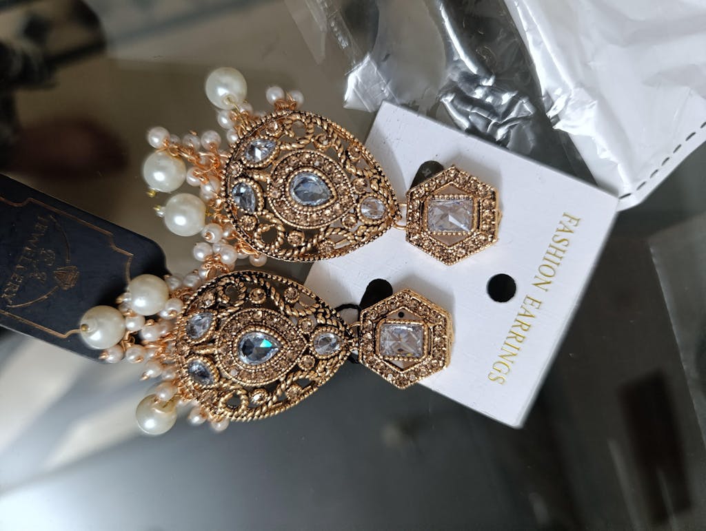Pearl Elegance Jhumka – A stunning fusion of timeless sophistication and intricate craftsmanship. These exquisite earrings feature dazzling crystal embellishments set in a delicate gold framework, beautifully complemented by luminous pearl drops. The blend of traditional and contemporary design makes them an ideal choice for weddings, festive occasions, and elegant soirées.